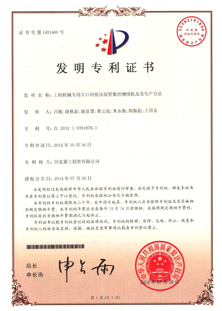 大口徑低壓膠管數(shù)控纏繞機(jī)及其生產(chǎn)方法