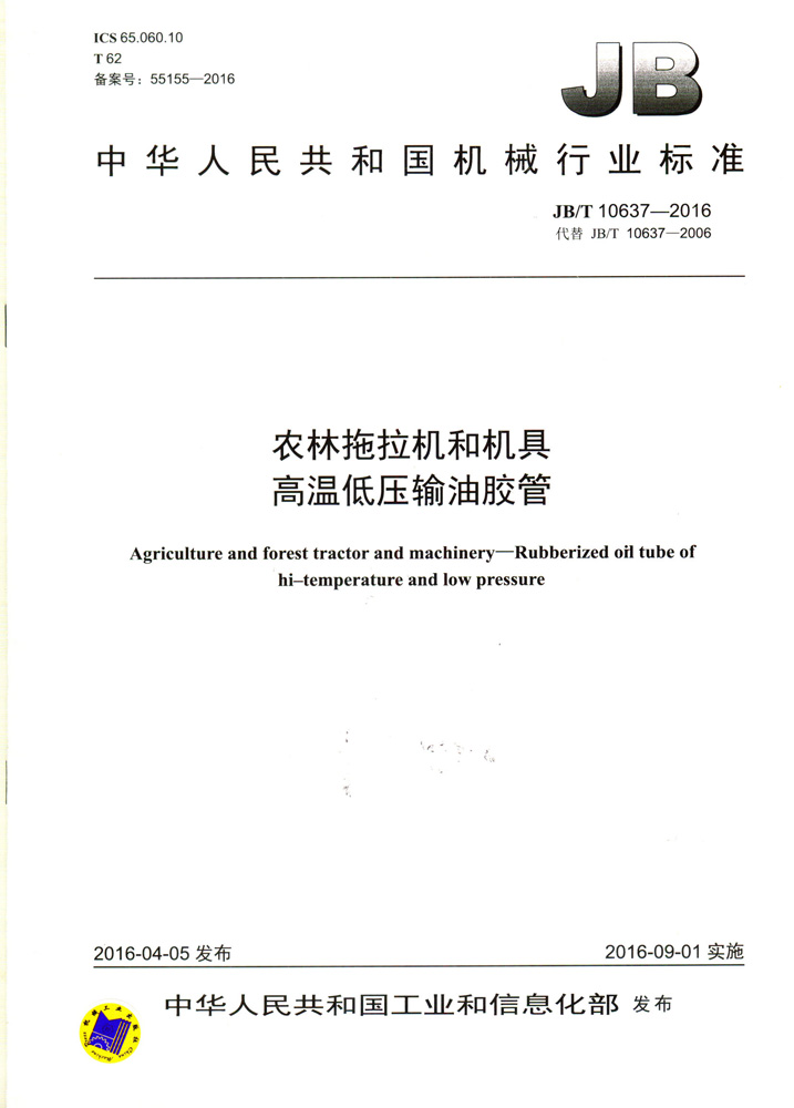 JB T 10637-2016農(nóng)林拖拉機(jī)和機(jī)具高溫低壓輸油膠管